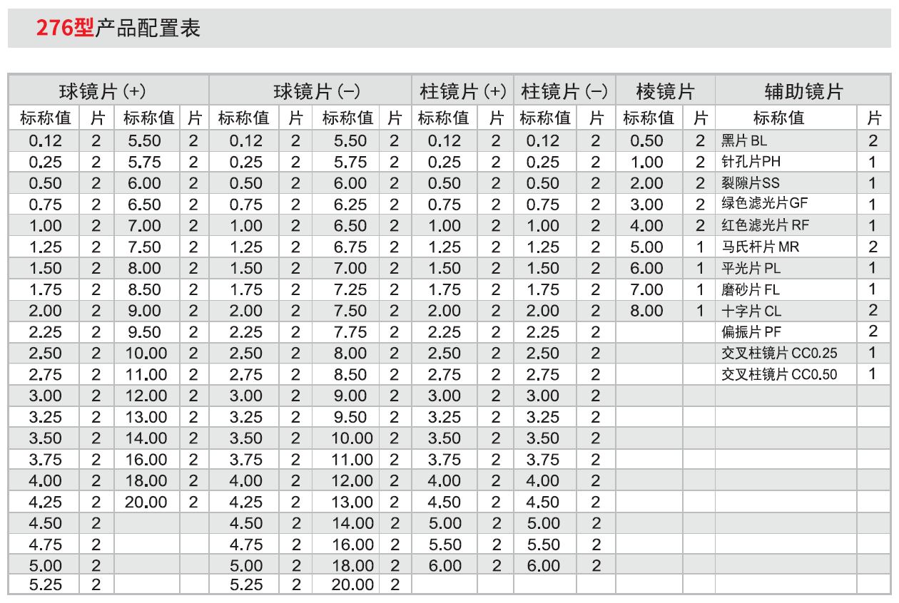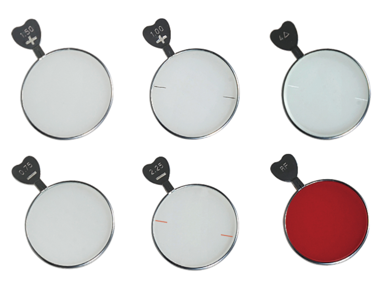 镜圈:大孔径金属亮圈,镜片通光孔径为35mm,视野宽阔,配戴更舒适。手柄度数标识采用单面刻字,更方便使用与检验。柱镜与棱镜的轴线标识直接刻于镜面上,永不会产生轴位变动