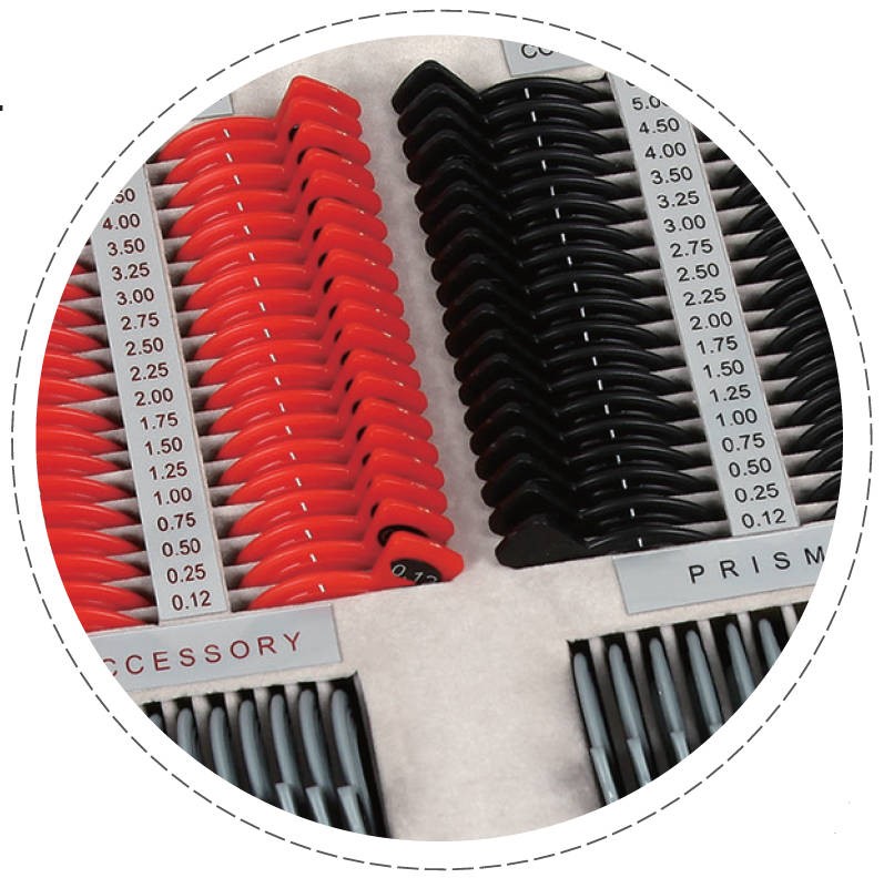 - Reduced-aperture trial case lenses 232 pieces included, with 26mm diameter clear lenses, of accurate powers and perfect finish