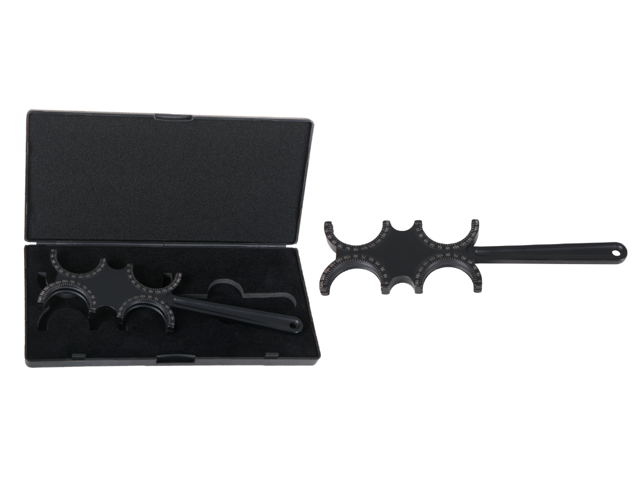 Product specifications:Double flipper support for trial lenses or prismatic lensesContains up to 8 trial lenses with a diameter of 38mmEach of holder with graduated scale 0-180°